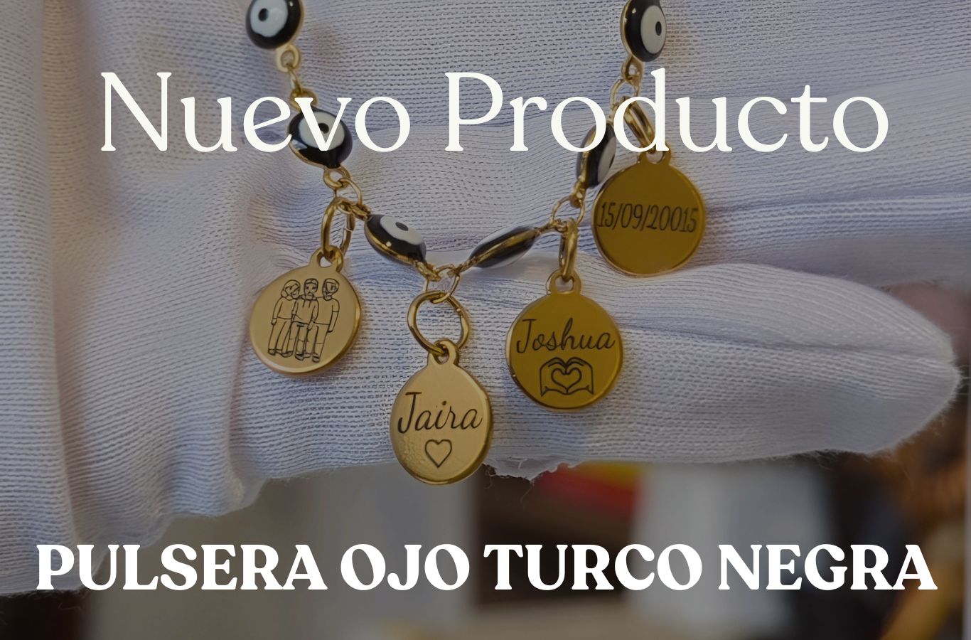 Pulsera Ojo Turco grabada con los nombres de la familia en acero